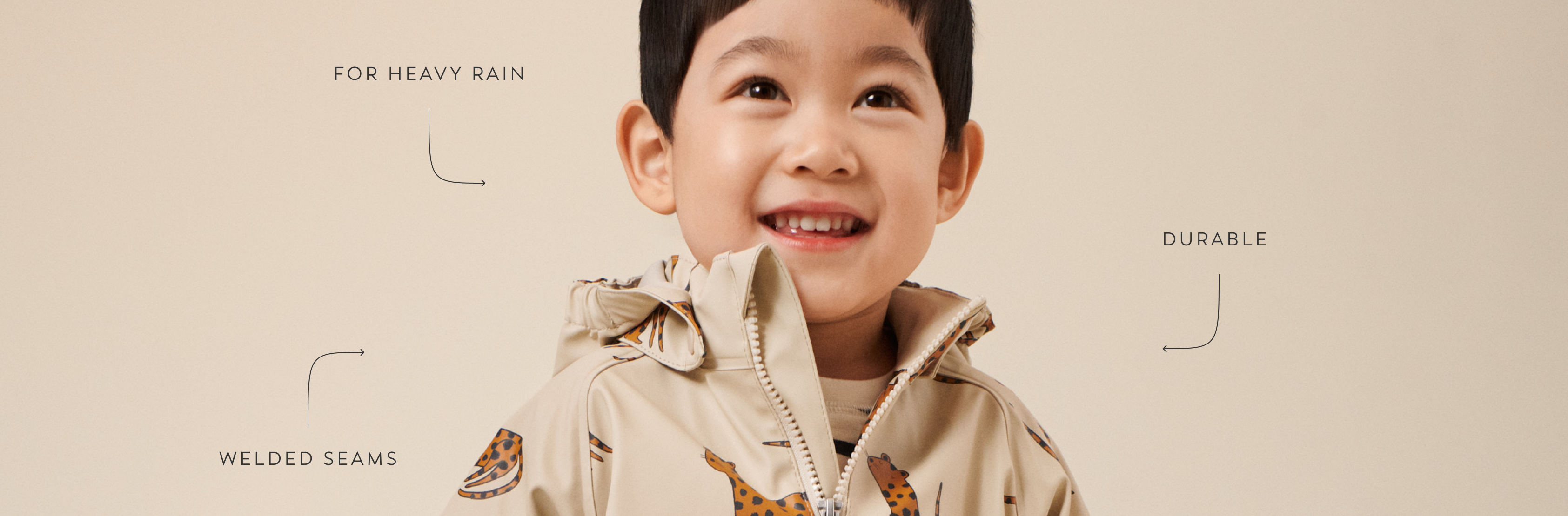 Pour résister à des pressions d’eau élevées, nos modèles en PU sont dotés de coutures soudées imperméables et coupe-vent pour protéger votre enfant dans les pires déluges.